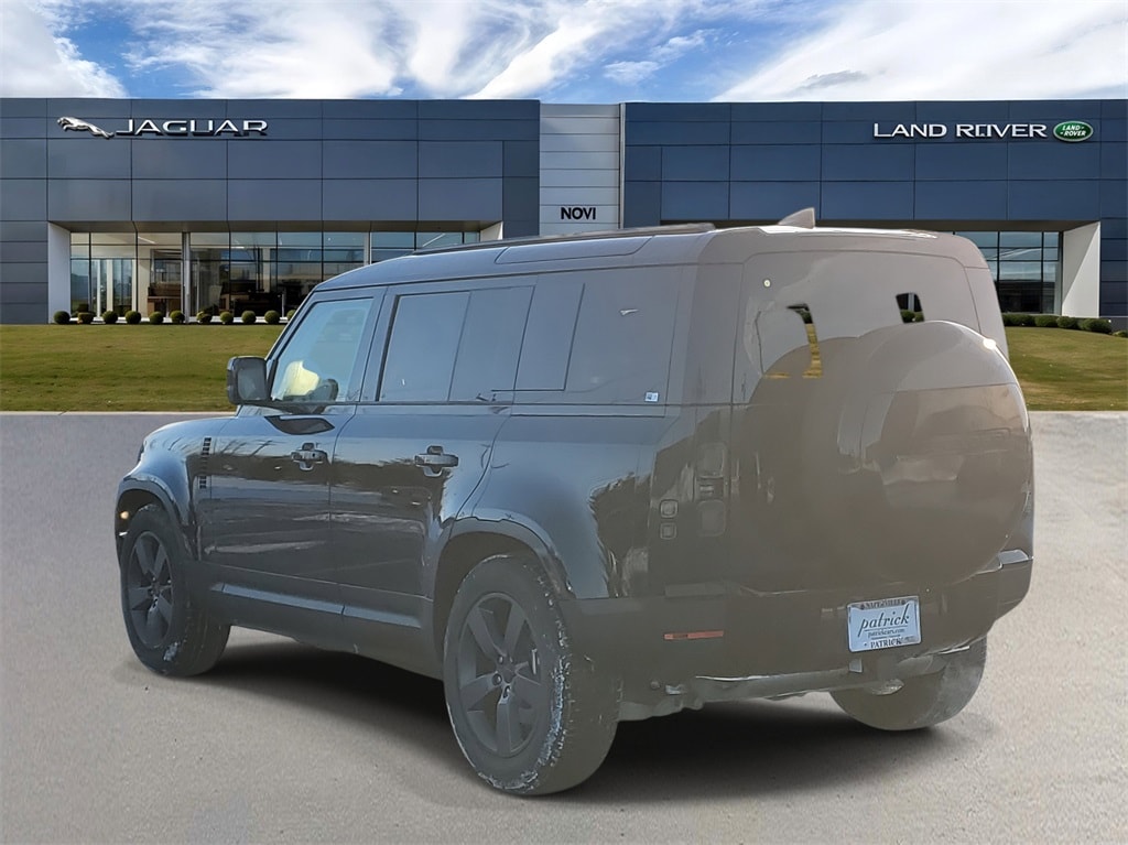 Santorini Black 2026 Land Rover Defender 110 S AWD 8-Speed Automatic 2.0L I4 DI Turbocharged 11 Speakers, 12-Way Heated Electric Memory Front Seats, 4-Wheel Disc Brakes, ABS brakes, Air Conditioning, Alloy wheels, AM/FM radio: SiriusXM, Apple CarPlay & Android Auto, Auto High-beam Headlights, Auto tilt-away steering wheel, Auto-dimming door mirrors, Auto-dimming Rear-View mirror, Automatic temperature control, Brake assist, Bumpers: body-color, Compass, Delay-off headlights, Driver door bin, Driver vanity mirror, Dual front impact airbags, Dual front side impact airbags, Electronic Stability Control, Exterior Parking Camera Rear, Four wheel independent suspension, Front anti-roll bar, Front Bucket Seats, Front Center Armrest, Front dual zone A/C, Front fog lights, Front reading lights, Fully automatic headlights, Garage door transmitter: HomeLink, Heated door mirrors, Heated front seats, Heated steering wheel, Illuminated entry, Low tire pressure warning, Memory seat, Navigation system: Connected Navigation PIVI Pro, Occupant sensing airbag, Outside temperature display, Overhead airbag, Overhead console, Panic alarm, Passenger door bin, Passenger vanity mirror, Power door mirrors, Power driver seat, Power moonroof, Power passenger seat, Power steering, Power windows, Radio data system, Radio: Meridian Sound System, Rain sensing wipers, Rear anti-roll bar, Rear fog lights, Rear reading lights, Rear seat center armrest, Rear window defroster, Rear window wiper, Remote keyless entry, Resist and Resolve Seat Trim, Security system, Speed control, Speed-sensing steering, Speed-Sensitive Wipers, Split folding rear seat, Steering wheel memory, Steering wheel mounted audio controls, Tachometer, Telescoping steering wheel, Tilt steering wheel, Traction control, Trip computer, Variably intermittent wipers, Weather band radio, Wheels: 19" Gloss Sparkle Silver Style 6010.