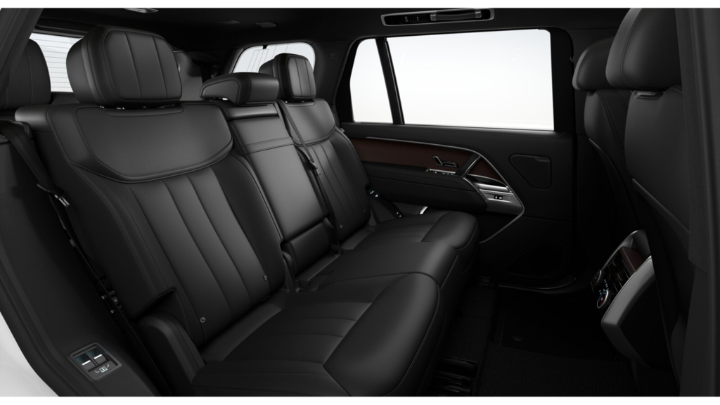 Santorini Black 2026 Land Rover Range Rover SE LWB AWD ZF 8-Speed Automatic 3.0L I6 Turbocharged Leather, 15 Speakers, 20-Way Heated and Ventilated Electric Front Bucket Seats, 3rd row seats: split-bench, 4-Wheel Disc Brakes, ABS brakes, Adaptive suspension, Air Conditioning, Alloy wheels, AM/FM radio: SiriusXM w/360L, Anti-whiplash front head restraints, Apple CarPlay & Android Auto, Auto High-beam Headlights, Auto tilt-away steering wheel, Auto-dimming door mirrors, Auto-dimming Rear-View mirror, Auto-leveling suspension, Automatic temperature control, Brake assist, Bumpers: body-color, Compass, Delay-off headlights, Driver door bin, Driver vanity mirror, Driver's Seat Mounted Armrest, Dual front impact airbags, Dual front side impact airbags, Electronic Stability Control, Emergency communication system, Exterior Parking Camera Rear, Four wheel independent suspension, Front anti-roll bar, Front Bucket Seats, Front Center Armrest w/Storage, Front dual zone A/C, Front fog lights, Front reading lights, Fully automatic headlights, Garage door transmitter: HomeLink, Genuine wood console insert, Genuine wood door panel insert, Head restraints memory, Headlight cleaning, Heated door mirrors, Heated front seats, Heated rear seats, Heated steering wheel, Illuminated entry, Leather Shift Knob, Leather steering wheel, Low tire pressure warning, Memory seat, Meridian Sound System, Navigation system: Pivi Pro Connected Navigation, Occupant sensing airbag, Outside temperature display, Overhead airbag, Overhead console, Panic alarm, Passenger door bin, Passenger seat mounted armrest, Passenger vanity mirror, Perforated Windsor Leather Seat Trim, Power adjustable front head restraints, Power door mirrors, Power driver seat, Power moonroof, Power passenger seat, Power steering, Power windows, Premium audio system: Meridian, Radio data system, Radio: SiriusXM Satellite and HD Audio System, Rain sensing wipers, Rear air conditioning, Rear anti-roll bar, Rear dual zone A/C, Rear fog lights, Rear reading lights, Rear seat center armrest, Rear window defroster, Rear window wiper, Remote keyless entry, Security system, Speed control, Speed-sensing steering, Speed-Sensitive Wipers, Split folding rear seat, Spoiler, Steering wheel memory, Steering wheel mounted A/C controls, Steering wheel mounted audio controls, Tachometer, Telescoping steering wheel, Tilt steering wheel, Traction control, Trip computer, Turn signal indicator mirrors, Variably intermittent wipers, Ventilated front seats, Ventilated rear seats, Weather band radio, Wheels: 21" (Style 5112), Leather.