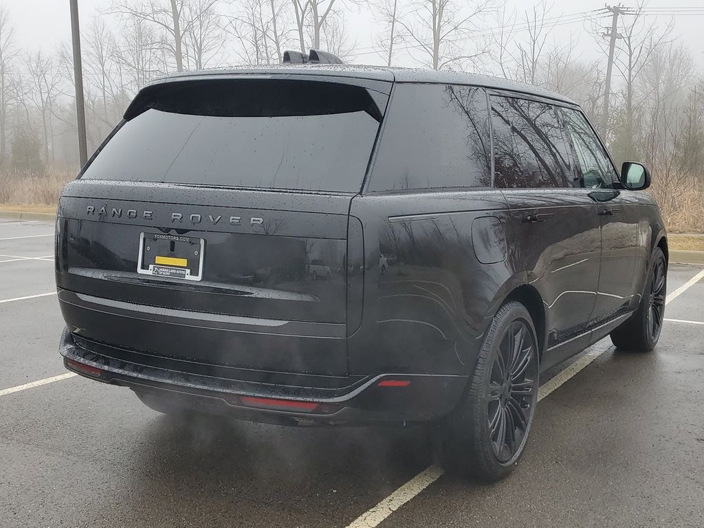 Santorini Black 2026 Land Rover Range Rover SE LWB AWD ZF 8-Speed Automatic 4.4L V8 Twin Turbocharged Leather, 15 Speakers, 20-Way Heated and Ventilated Electric Front Bucket Seats, 3rd row seats: split-bench, 4-Wheel Disc Brakes, ABS brakes, Adaptive suspension, Air Conditioning, Alloy wheels, AM/FM radio: SiriusXM w/360L, Anti-whiplash front head restraints, Apple CarPlay & Android Auto, Auto High-beam Headlights, Auto tilt-away steering wheel, Auto-dimming door mirrors, Auto-dimming Rear-View mirror, Auto-leveling suspension, Automatic temperature control, Brake assist, Bumpers: body-color, Compass, Delay-off headlights, Driver door bin, Driver vanity mirror, Driver's Seat Mounted Armrest, Dual front impact airbags, Dual front side impact airbags, Electronic Stability Control, Emergency communication system, Exterior Parking Camera Rear, Four wheel independent suspension, Front anti-roll bar, Front Bucket Seats, Front Center Armrest w/Storage, Front dual zone A/C, Front fog lights, Front reading lights, Fully automatic headlights, Garage door transmitter: HomeLink, Genuine wood console insert, Genuine wood door panel insert, Head restraints memory, Headlight cleaning, Heated door mirrors, Heated front seats, Heated rear seats, Heated steering wheel, Illuminated entry, Leather Shift Knob, Leather steering wheel, Low tire pressure warning, Memory seat, Meridian Sound System, Navigation system: Pivi Pro Connected Navigation, Occupant sensing airbag, Outside temperature display, Overhead airbag, Overhead console, Panic alarm, Passenger door bin, Passenger seat mounted armrest, Passenger vanity mirror, Perforated Windsor Leather Seat Trim, Power adjustable front head restraints, Power door mirrors, Power driver seat, Power moonroof, Power passenger seat, Power steering, Power windows, Premium audio system: Meridian, Radio data system, Radio: SiriusXM Satellite and HD Audio System, Rain sensing wipers, Rear air conditioning, Rear anti-roll bar, Rear dual zone A/C, Rear fog lights, Rear reading lights, Rear seat center armrest, Rear window defroster, Rear window wiper, Remote keyless entry, Security system, Speed control, Speed-sensing steering, Speed-Sensitive Wipers, Split folding rear seat, Spoiler, Steering wheel memory, Steering wheel mounted A/C controls, Steering wheel mounted audio controls, Tachometer, Telescoping steering wheel, Tilt steering wheel, Traction control, Trip computer, Turn signal indicator mirrors, Variably intermittent wipers, Ventilated front seats, Ventilated rear seats, Weather band radio, Wheels: 21" Diamond Turned (style 7021), Leather.