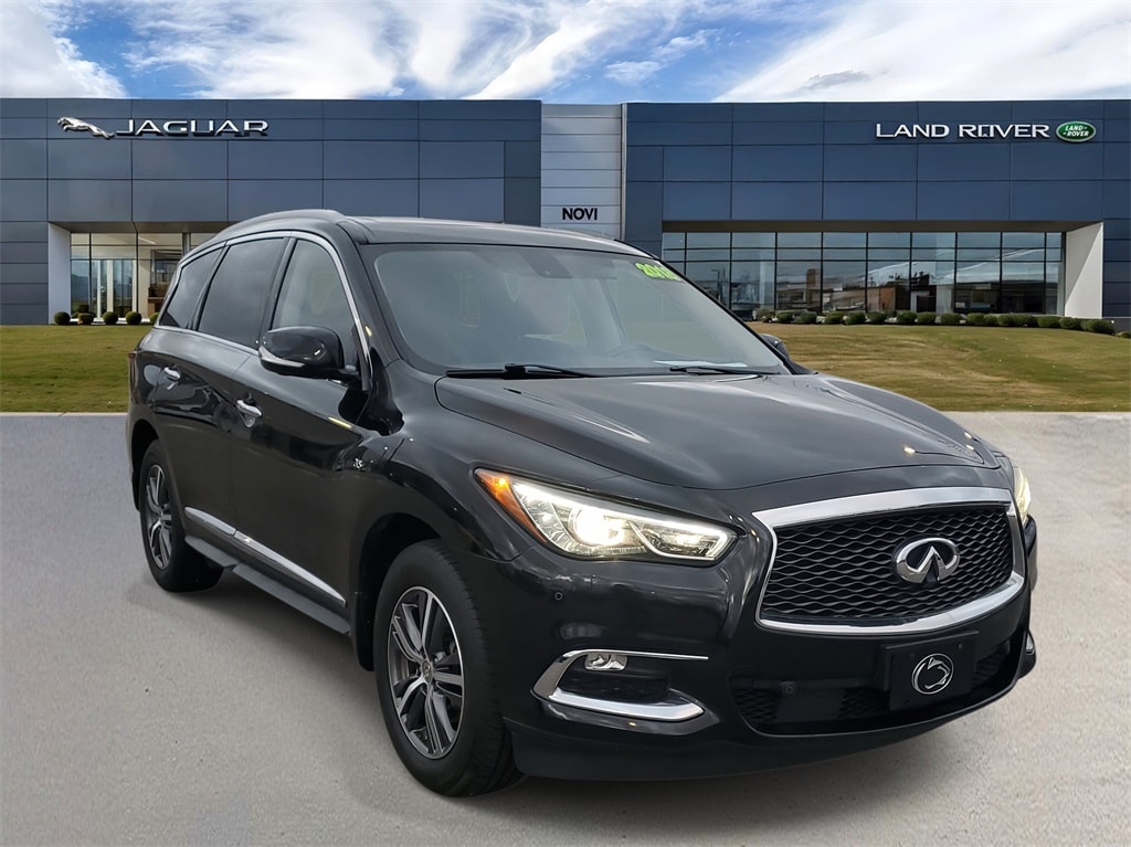 2-Way Driver's Seat Power Lumbar Support, 3rd row seats: bench, 4-Wheel Disc Brakes, 5.25 Axle Ratio, 6 Speakers, ABS brakes, Active Trace Control, Air Conditioning, Alloy wheels, AM/FM radio: SiriusXM, AM/FM/CD/MP3 Audio System, Around View Monitor w/Moving Object Detection, Auto Side Dimming Mirrors, Auto-dimming Rear-View mirror, Automatic temperature control, Back-Up Collision Intervention (BCI), Blind Spot Warning System (BSW), Bodyside moldings, Brake assist, Bumpers: body-color, CD player, Delay-off headlights, Distance Control Assist, Driver Assistance Package, Driver door bin, Driver vanity mirror, Dual front impact airbags, Dual front side impact airbags, Dual Occupant Memory System, ECO Pedal, Electronic Stability Control, Enhanced Intelligent Key Memory, Entry & Exit Assist, Four wheel independent suspension, Front & Rear Sonar Sensors, Front anti-roll bar, Front Bucket Seats, Front Center Armrest w/Storage, Front dual zone A/C, Front fog lights, Front reading lights, Fully automatic headlights, Garage door transmitter, Heated door mirrors, Heated Front Seats, Heated front seats, Heated Steering Wheel, High intensity discharge headlights: Bi-Xenon, Illuminated entry, Illuminated Kick Plates (IKP), INFINITI Navigation, Intelligent Cruise Control, Leather Shift Knob, Leather steering wheel, Leather-Appointed Seats, Low tire pressure warning, Occupant sensing airbag, Outside Mirrors w/Reverse Tilt-Down Feature, Outside temperature display, Overhead airbag, Overhead console, Panic alarm, Passenger door bin, Passenger vanity mirror, Power door mirrors, Power driver seat, Power Liftgate, Power moonroof, Power passenger seat, Power steering, Power windows, Premium Package, Premium Plus Package, Radio data system, Radio: AM/FM/CD/DVD w/MP3 Playback Capability, Rain-Sensing Front Windshield Wipers, Rear air conditioning, Rear anti-roll bar, Rear Bumper Protector, Rear reading lights, Rear seat center armrest, Rear window defroster, Rear window wiper, Reclining 3rd row seat, Remote Engine Start, Remote keyless entry, Roof Rails, Security system, Speed control, Speed-sensing steering, Speed-Sensitive Wipers, Splash Guards (Color-Matched Set of 4), Split folding rear seat, Spoiler, Steering wheel mounted audio controls, Tachometer, Telescoping steering wheel, Tilt steering wheel, Traction control, Trip computer, Turn signal indicator mirrors, Variably intermittent wipers, Voice Recognition For Navigation, Wheels: 18" Triple 5-Spoke Aluminum-Alloy.