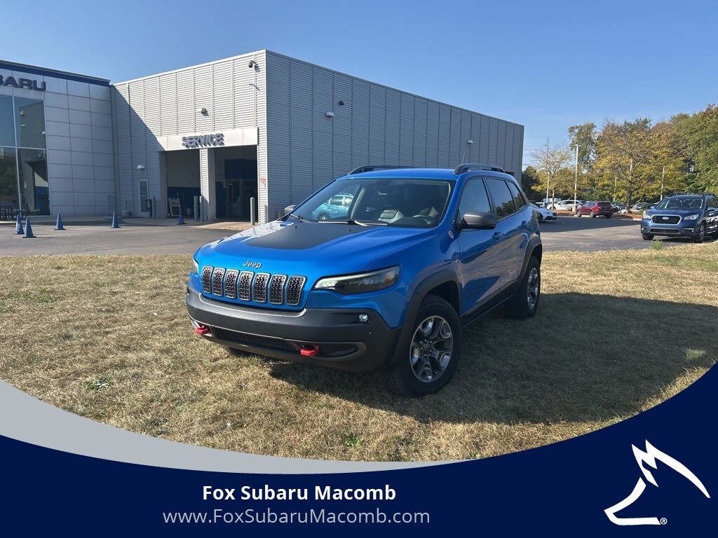 If you're looking for rugged capability blended with modern tech, this 2019 Jeep Cherokee Trailhawk in Hydro Blue Pearlcoat at Fox Subaru of Macomb is the ultimate adventure-ready SUV you've been searching for. This Trail Rated 4x4 SUV comes loaded with sought-after features like Apple CarPlay and Android Auto, Heated Front Seats, a Heated Steering Wheel, and the Cold Weather Group with a Windshield Wiper De-Icerperfect for tackling Michigan winters in comfort. With a Clean CarFax, this used Jeep Cherokee Trailhawk has been meticulously maintained and is equipped with the Quick Order Package 27E, Power Driver Seat, Engine Block Heater, and stunning 17" x 7.5" Painted/Polished Aluminum Wheels. Whether you're searching for a used Jeep Trailhawk for sale, a 4x4 SUV with Apple CarPlay, or a reliable off-road SUV near Detroit, this Cherokee checks all the boxes. Dont miss your chance to own this Hydro Blue head-turnerschedule your test drive at Fox Subaru of Macomb today and experience why the 2019 Jeep Cherokee Trailhawk is still a top pick among used off-road SUVs.