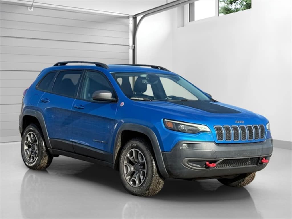 Hydro Blue Pearlcoat 2020 Jeep Cherokee Trailhawk 9-Speed 948TE Automatic 3.2L V6 Cherokee Trailhawk, 3.2L V6, 4WD, Hydro Blue Pearlcoat, Black Cloth, Apple CarPlay/Android Auto, Auto-Dimming Rear-View Mirror, Cold Weather Group, Comfort/Convenience Group, Engine Block Heater, Heated Front Seats, Heated Steering Wheel, Leather Wrapped Steering Wheel, ParkView Rear Back-Up Camera, Power Front/Fixed Rear Full Sunroof, Power Liftgate, Quick Order Package 27E Trailhawk, Remote Start System, Security Alarm, Universal Garage Door Opener, Wheels: 17" x 7.5" Painted Diamond Cut Aluminum, Windshield Wiper De-Icer.