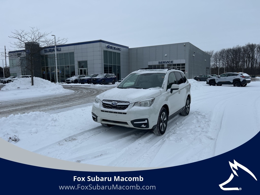 Fox Subaru of Macomb is proud to offer this eye-catching 2017 Subaru Forester 2.5i Premium in Crystal White Pearl, a standout choice for shoppers searching for a reliable used Subaru Forester for sale that blends versatility, safety, and all-weather confidence. Backed by a Clean Carfax, this popular compact AWD SUV is equipped with sought-after features like 17-inch alloy wheels, Subarus All-Weather Package, heated exterior mirrors, heated front seats, and a power driver seat, making it an ideal daily driver for Michigan roads and beyond. The Windshield Wiper De-Icer adds extra cold-weather convenience, while Subarus legendary Symmetrical All-Wheel Drive delivers year-round traction and peace of mind. Known for its long-lasting reliability, excellent safety ratings, and strong resale value, this 2017 Subaru Forester 2.5i Premium is perfect for drivers searching for a fuel-efficient AWD SUV, a dependable family vehicle, or an adventure-ready crossover. If youre looking for a used Subaru Forester near Macomb that checks all the boxes, this one is ready to impress.